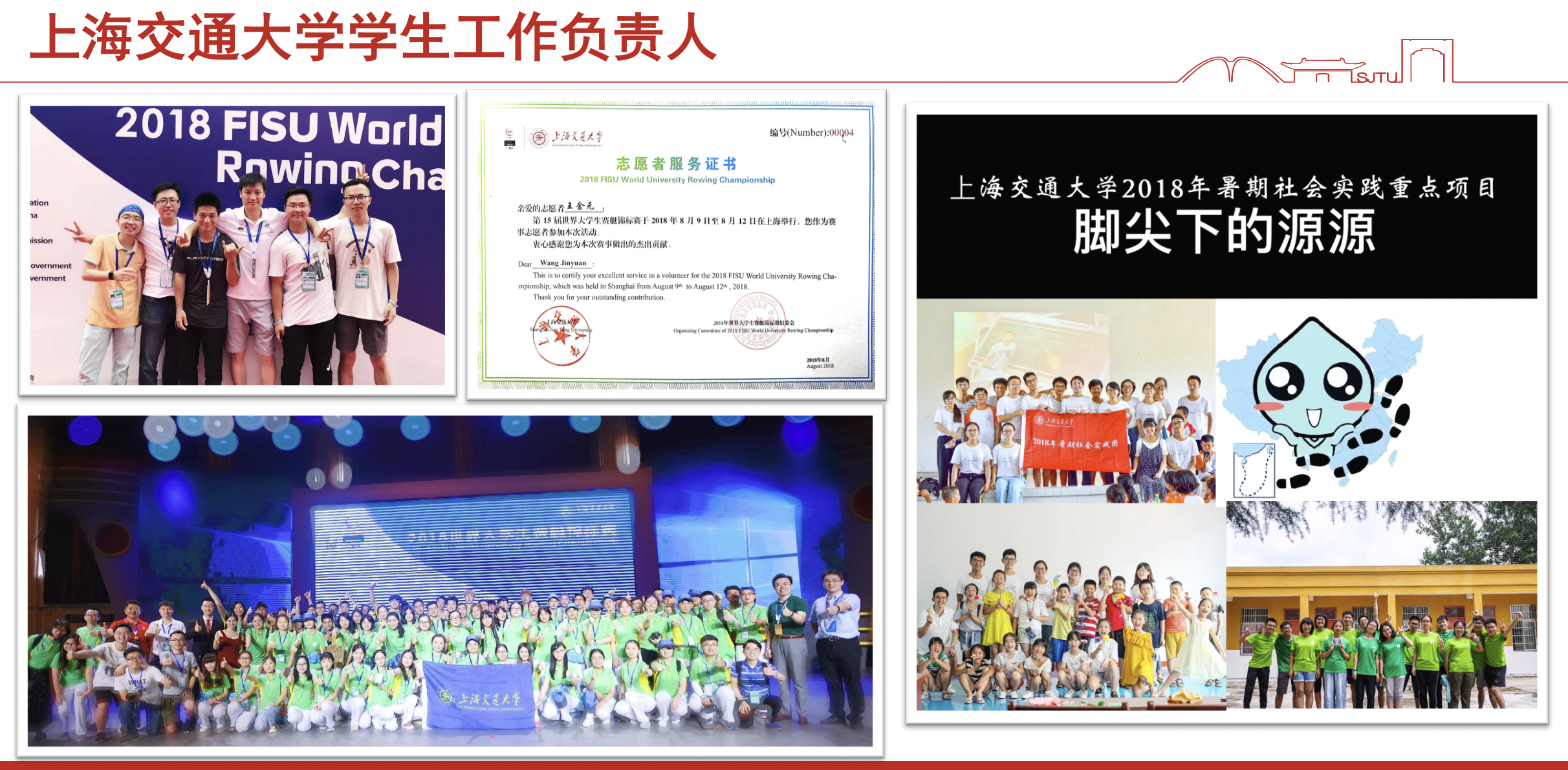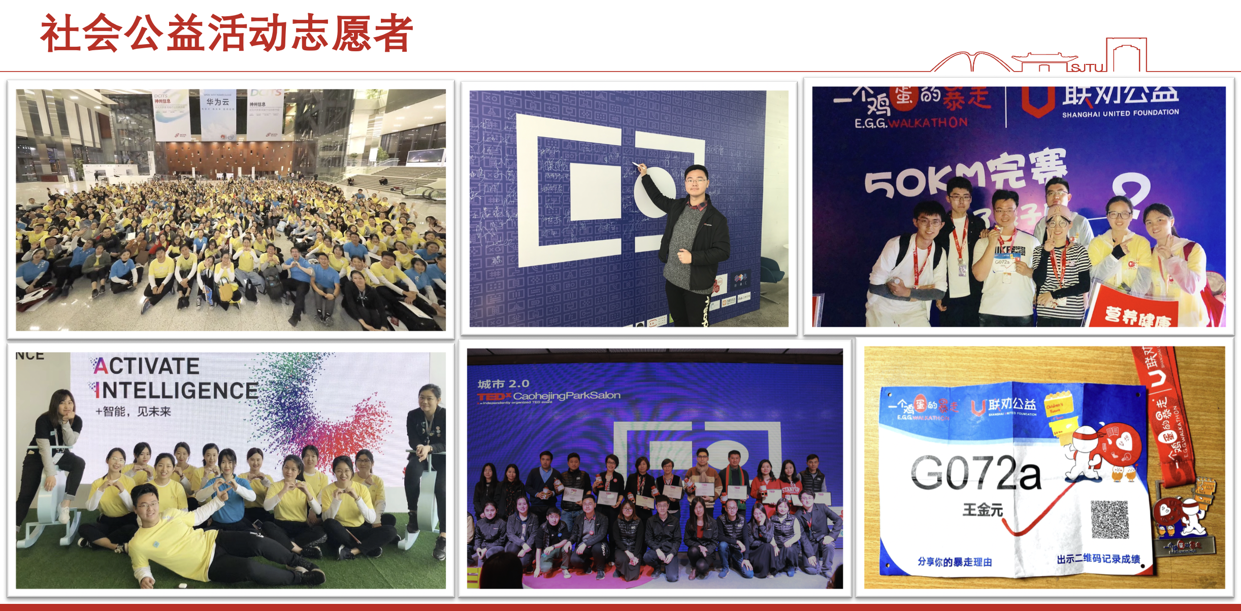 2017-2018学年,金元参加校内志愿者活动十余次,累计学生工作超过1000小时,被评为上海交通大学“十佳志愿者”。