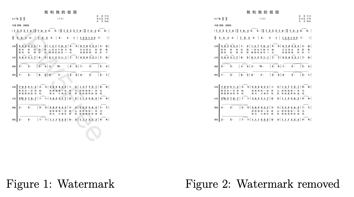 数字图像处理是利用计算机通过一定的算法对数字图像进行处理。 在本课程中,李教授专注于灰度图像中的像素级和拓扑级图像处理和边缘检测。 通过像素级处理技术,我们实现了颜色到灰度的转换,并通过阈值处理实现图像二值化,以简单地去除灰度图像上的简单水印,如图 1 和图 2 所示。此外,采用非拓扑级处理方法 -最大抑制、扩张和侵蚀,我们对去水印后的灰度图进行去噪处理,得到更清晰、更高质量的图像。