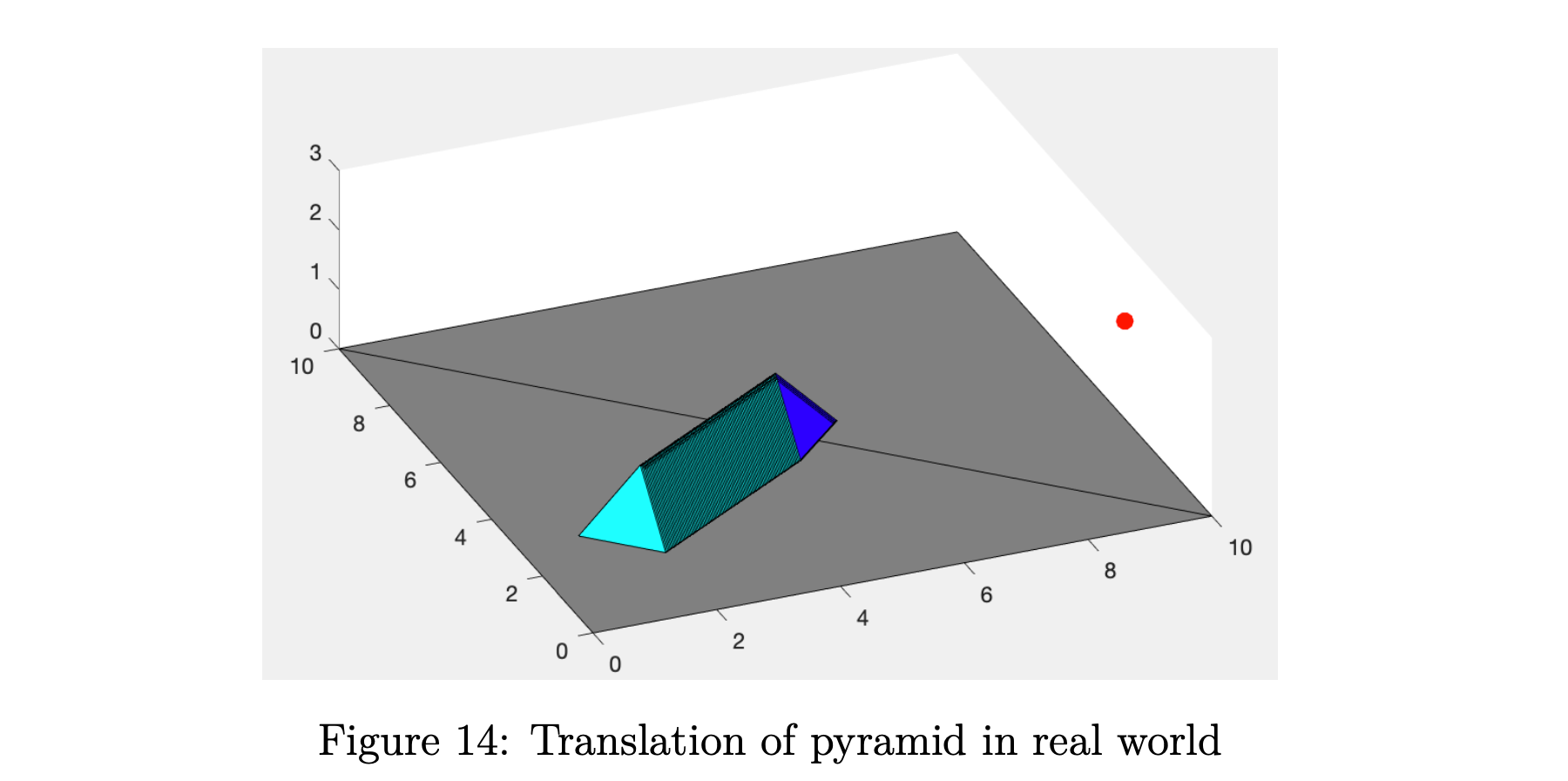 在本次作业中,我们使用 MATLAB 建立了一个带有彩色金字塔物体和针孔摄像机的 VR 场景,实现了摄像机静止时物体的移动和物体静止时摄像机的移动,并将捕获的场景可视化 在这两种情况下都由相机拍摄。 这加深了我对VR的理解,也唤醒了我对传统CV算法的进一步兴趣。 在计算的过程中,我们深知CPU的局限性以及GPU并行计算的重要性。